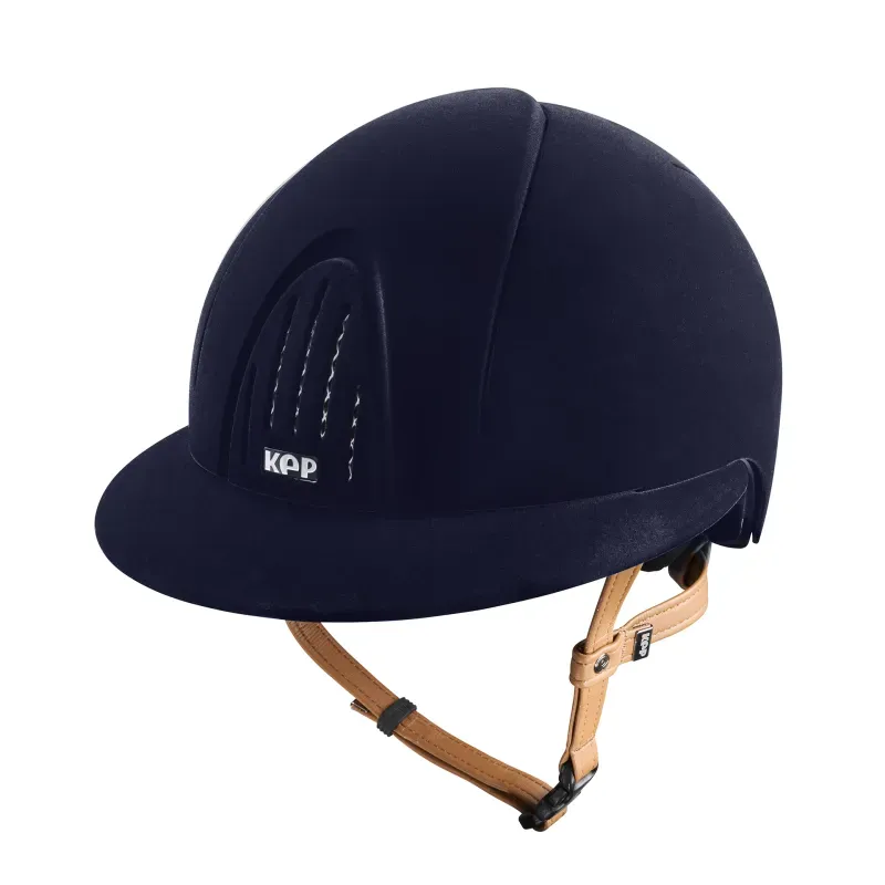 Caschi equitazioneHelmeReithelm Smart Nova / Blaues Samt / Beiger Kinnriemen / Polo-Visier