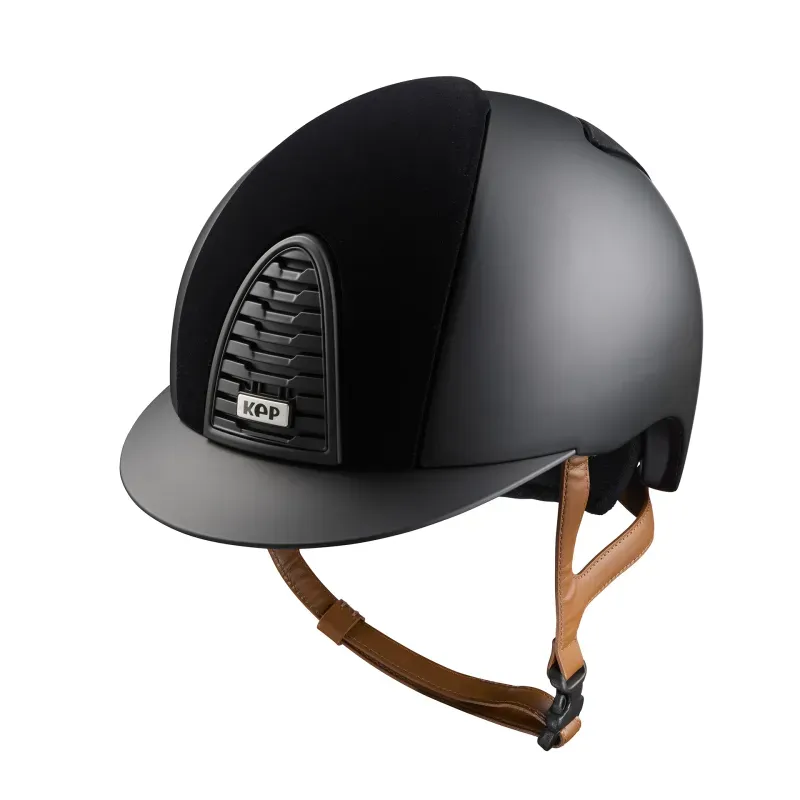 Casco de equitación Cromo 2.0 / Negro mate / Terciopelo negro / Barboquejo beige Casco de equitación Cromo 2.0 / Negro mate / Terciopelo negro / Barboquejo beige Medium